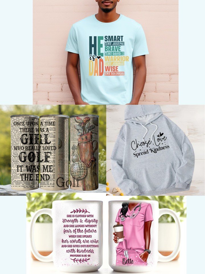 Customers love products that feel both stylish and personal. Catchy slogan t-shirts are always a hit, along with cozy hoodies and tumblers featuring eye-catching graphics. Personalized items—like custom tumblers and mugs with matching coasters—are especially popular, as they add a unique, meaningful touch. Many customers also enjoy the option to customize these products, making them perfect for gifts or personal use.